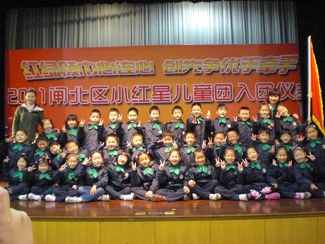 12月2日上午,闸北区第一中心小学183名一年级小朋友和20位小辅导员前往闸北区青少年活动中心参加了“红绿领巾心连心创先争优手拉手”2011闸北区小红星入团仪式。一年级新生高唱着《共产儿童团团歌》、《绿领巾之歌》,用他们抖擞的精神告诉所有老师和小伙伴,今天他们成为了一名光荣的儿童团员。大队辅导员陈老师宣布了此次入团的名单,从小辅导员手中接过鲜艳绿领巾的他们分外激动,戴上绿领巾的那一刻他们感到无比地自豪和骄傲,戴上他,大家就要在各方面严格要求自己,在校争做好学生,在家争做好孩子,在社区争做好公民。通过实际行动让自己成长为一棵最茁壮的小苗苗。新团员们纷纷表示将以优异的成绩和良好的行规来证明儿童团员的光荣与梦想。