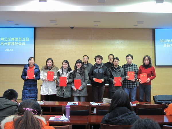 昨天下午举行的2011学年度第二学期闸北区学校信息技术分管领导和网管员会议上,闸北区现代教育中心主任王一瓴代表本次系列比赛的主办单位闸北区教育局宣布了比赛结果并颁发了奖状,我校在多项赛事中取得好成绩,由我校蔡喆炯老师开发的《魔铃2010》学校铃声管理系统荣获本届活动学校应用平台评比一等奖,韩颖老师执教的《花木兰》(语文)荣获本届活动电子白板视频评比一等奖,由金晶老师执教的《东南西北》(数学)荣获本届活动电子白板视频评比的二等奖,蔡喆炯老师开发的《校校通自动登录器》荣获本届活动学校应用平台评比二等奖。