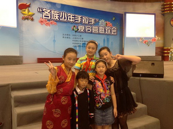 为深入贯彻落实共青团民族地区青少年工作研讨会精神,参与实施“青少年民族团结交流万人计划”,推进“各族少年手拉手”活动,全国少工委于今年暑期举办了2012年“各族少年手拉手”夏令营活动。通过各族少年儿童代表一对一、面对面的实践体验活动,促进各族少年儿童情感交融,培养少年儿童的民族团结意识和国家意识,探索各族少年儿童“手拉手”活动机制。本次夏令营为期近一周,连同我校在内的来自全国各地56个民族的360名“手拉手”小伙伴一起参观了科技馆、辰山植物园、东方明珠、中国福利少年宫,参加了“我和我的伙伴”主题团队拓展活动,开展营地生活,使得“手拉手”小伙伴建立纯真的友谊。7月30日上午,“各族少年手拉手”夏令营联欢会暨闭营仪式在上海举行。在联欢会上,各民族各地区的少年儿童营员代表分别表演了具有民族和地方特色的文艺节目。来自全国各地56个民族代表表演了特色服饰走秀,小营员们各各神采飞扬,充分表现出民族的特色。新疆少先队队员带来新疆舞,蒙古少先队员带来了蒙古族特色舞蹈,节目从不同角度反映了不同民族的文化和生活,小伙伴们多才多艺的表演也赢得了全场热烈的掌声。上海少先队员的舞蹈《摘南瓜》将现场气氛推向高潮。
