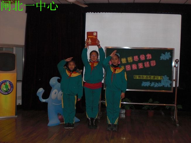 主题:“我为世博尽份力,世博因我更精彩!”迎世博心语传递仪式(双语进行)