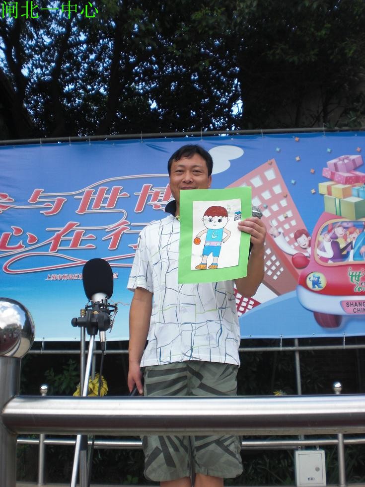 学生轮流上场高举手中的图画,说出老师的特征,请下面的学生猜一猜,然后走下台将作品送给这位老师。(建议5--6位左右)